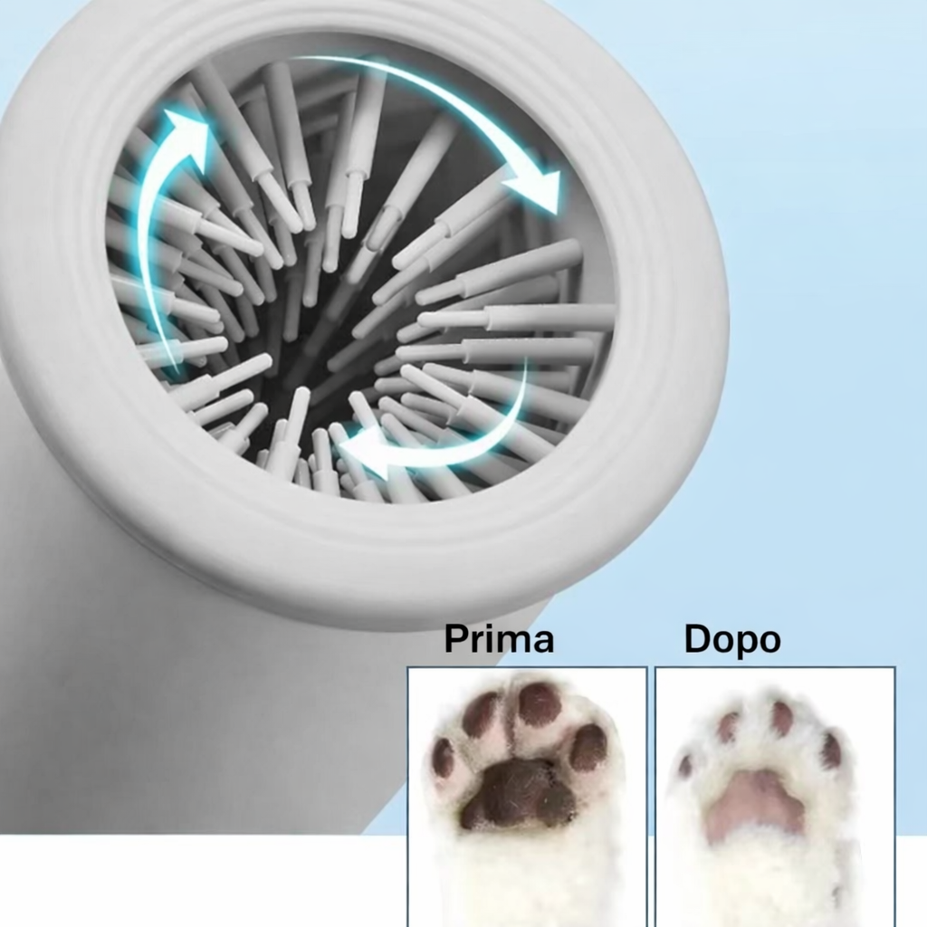 La pulizia completa richiede solo 15-20 secondi per zampa. Grazie al motore ad alta rotazione, rimuove fango e sporco molto più velocemente rispetto alle salviette tradizionali